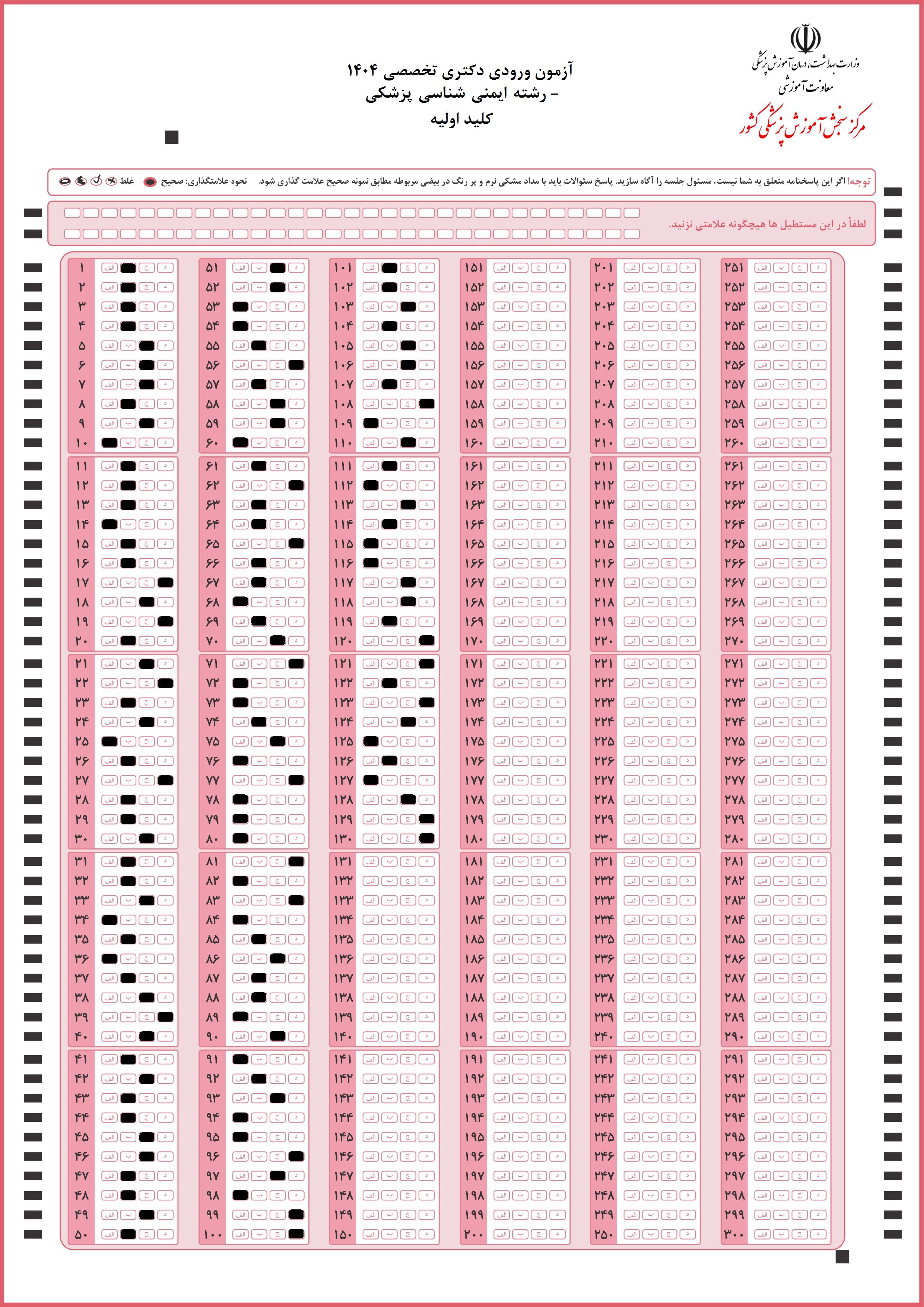 به همین دلیل، مؤسسه علوم پزشکی سنا با هدف دسترسی دائم داوطلبان، کلید سؤالات آزمون دکتری رشتههای مختلف وزارت بهداشت را در این بخش از سایت بهصورت رایگان و دائمی بارگذاری کرده است تا شما در طول سال بتوانید هر زمان نیاز داشتید، به آنها مراجعه کنید.